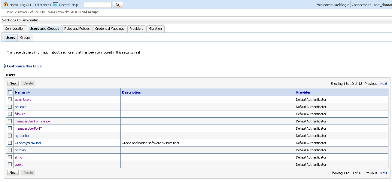 Pic1: Configure new users in weblogic’s default realm