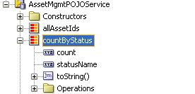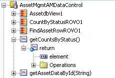 when implemented in an POJO Service, you create a data control by right-clicking on the Java service class in JDeveloper and will find the Data Control looks something like this – the fields of the List element are displayed (and when dropped on a JSF page there are two columns, for example, Count and Status)