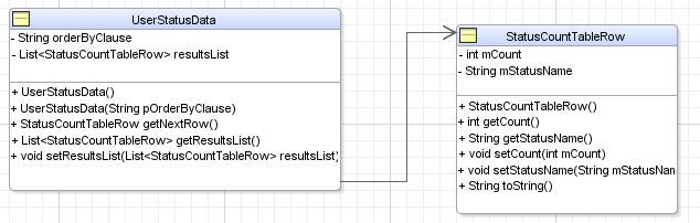 So far we have been dealing with creating the query, storing the result and finding out if we have reached the end or not… but how does the type “StatusCountTableRow” get converted to a Table Row on a page? (Remember our core issue). The magic happens here. This is where we take the “next()” row in the “Iterator” in the “UserData” which we had cached in the framework and “map” the values to the fields we created in the View Object.