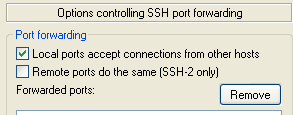 - Check/Select “Port Forwarding” in Putty (see image below) by selecting check-box under “Category: Connection -> SSH -> Tunnels” in the Left-hand panel and “SSH Port forwarding” in the Right-Hand Panel