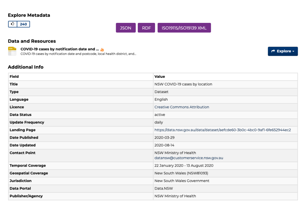 I particularly loved the structure of the JSON metadata because it is quite self-describing, leading to a link to the document with the COVID-19 data