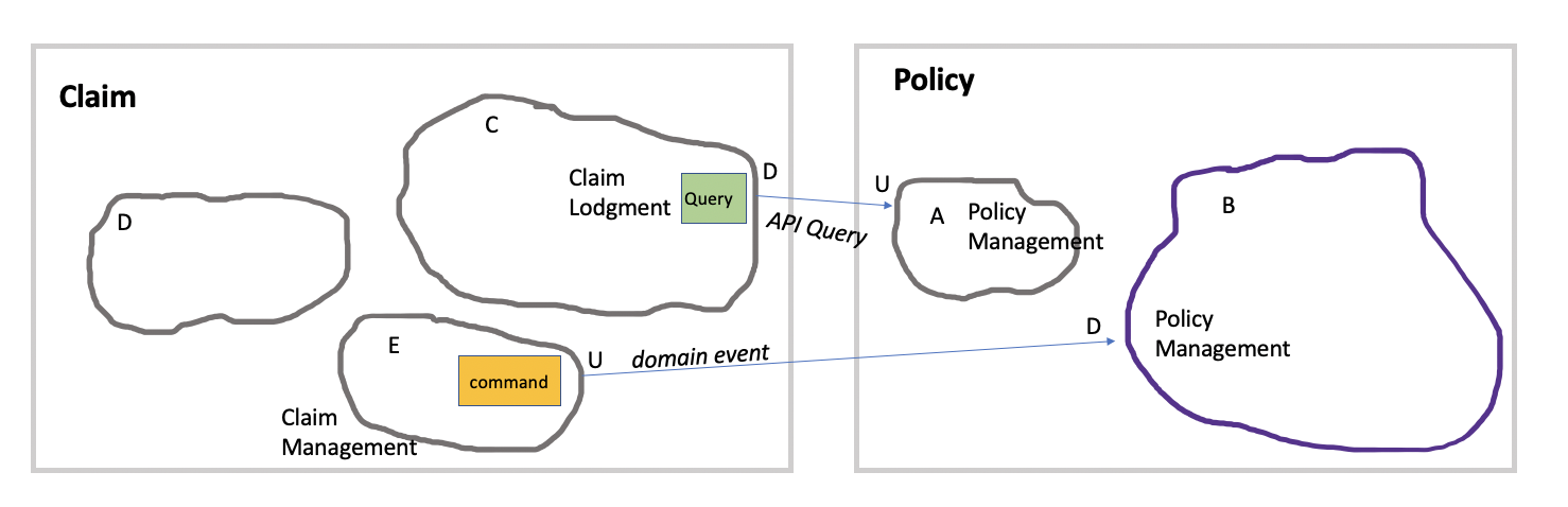 - Multiple Contexts within the domain: e.g. Claim Lodgement and Management, Claim Owner Registration
