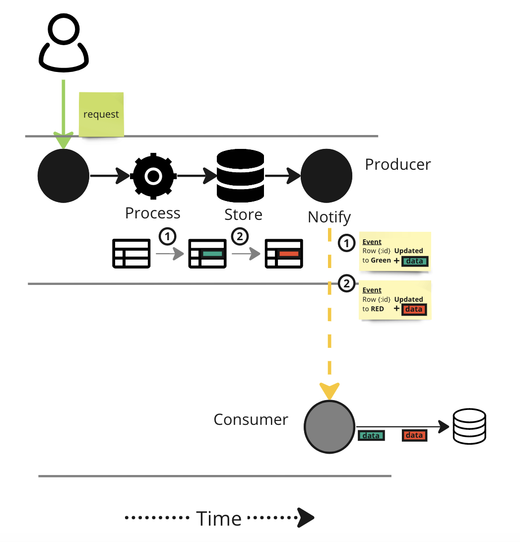 Use timestamps and correlation identifiers to order and relate state change events as consumers may need ways to determine when and in which order these happened. With state change events consumers need a way to query the latest state and often these messages are accompanied by query APIs to get the latest state. The state change event pattern is safer than full state transfer event mechanism (pattern 2) because it does not explicit require the messages to be in order (i.e. the consumer can react to an event and query the latest state vs learning the latest state from a series of messages)
