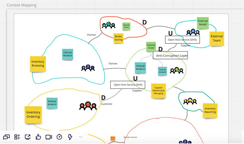 These come from business-domain oriented view vs a typical EA enterprise architecture map of systems. I love it because they show a birds-eye view of the bounded-contexts, domain models, interactions between contexts and team topology. These come from domain driven design (DDD)