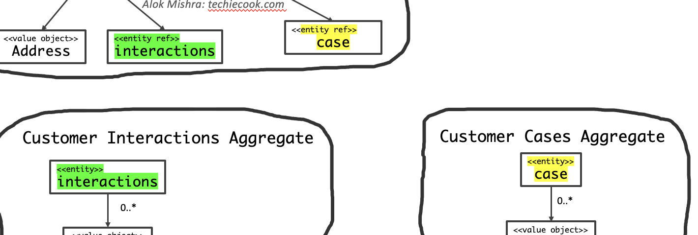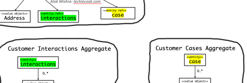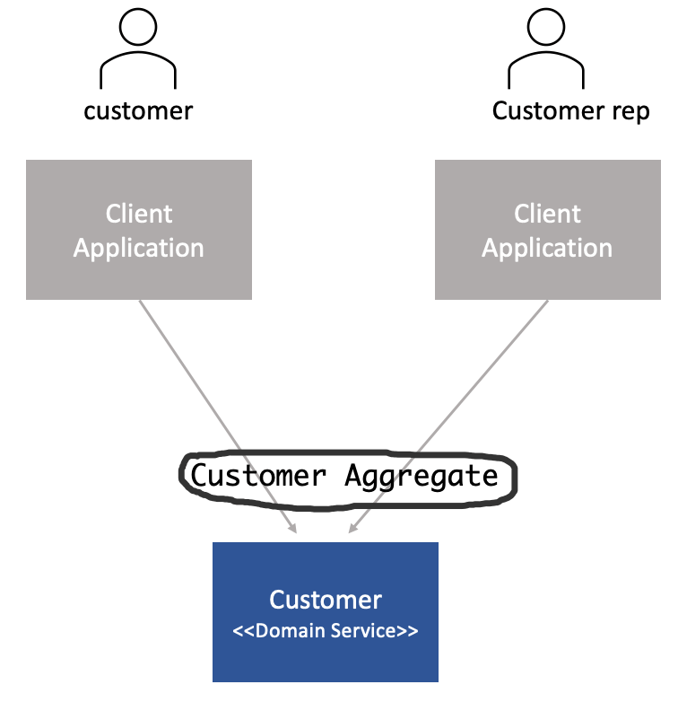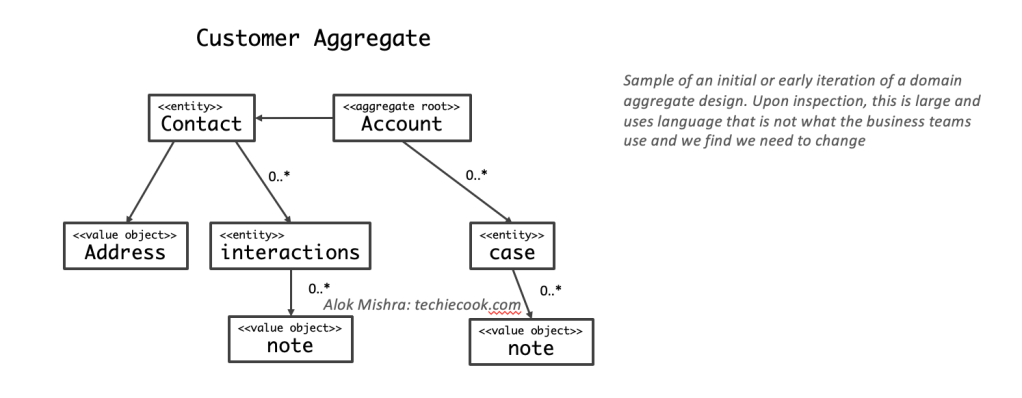 Take for example, a scenario where we are designing the Customer Aggregate. Our initial design may include a large object graph with interactions, cases etc.