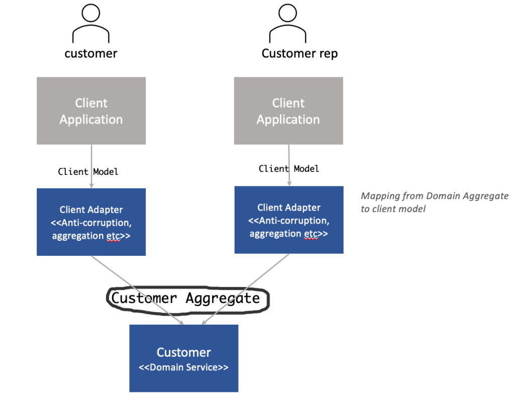 The above agility and change question is answered by how we allow consumers to bind to the domain service. How tightly coupled are our clients to the domain services and how much do they rely on our internal aggregate design?